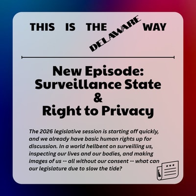 2026 is off, and the Delaware legislature is also just getting started. This episode covers some general state news and a few New Castle County soundbites, but everything connects back to a proposed constitutional amendment for a basic right to privacy. In a world hellbent on surveilling us, inspecting our lives and our bodies, and making images of us -- all without our consent -- what can our legislature due to slow the tide? (Content warning in the last five minutes for mention of the word "p*rn," just in case you listen while your kids are around.)